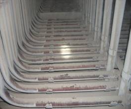 ͼ8~9·Ö±ðÃèÊöÁË#2¹øÂ¯µÍÎÂÔÙÈÈÆ÷µÚ4²Ö°²×°Éù²¨´µ»ÒÆ÷ǰµÄ»ý»ÒÇé¿öÓë2010Äê#2»ú×é¹úÇìµ÷Í£ÆÚ¼äµÍÎÂÔÙÈÈÆ÷¼ì²éʱµÚ4²ÖµÄ»ý»ÒÇé¿ö¡£ÈçͼËùʾ£¬Í¨¹ý°²×°Éù²¨´µ»ÒÆ÷ǰºó¹ÜÅÅ»ý»ÒµÄ¶Ô±È¿ÉÖª£¬Éù²¨´µ»ÒÆ÷²»½ö¶Ô¹ÜÅÅÉÏËÉÈí»ý»ÒÐü¸¡Á÷»¯×÷ÓÃÃ÷ÏÔ£¬¶øÇÒ¶Ô¹ÜÅÅÉϰå½á»ý»Ò¾ßÓÐÏÔÖø°þÀë×÷Óã¬Òò´ËÉù²¨´µ»ÒЧ¹ûÁ¼ºÃ£¬¿É½µµÍ°²×°Éù²¨´µ»ÒÆ÷ÇøÓò³¤ÉìËõʽÕôÆû´µ»ÒÆ÷´µ»ÒƵÂÊ£¨ÓÉÿÌì´µ»ÒÒ»´Î½µÎªÃ¿Öܶþ´Î»ò¸üµÍ£¬ÉõÖÁÍ£ÔË£©£¬Äܹ»ÓÐЧ·ÀÖ¹¸ÃÇøÓò¹øÂ¯ÊÜÈÈÃæ½øÒ»²½±»´µ»ÒÕôÆû´µËð£¬ÓÐЧ·ÀÖ¹¹øÂ¯ËĹÜ©йʹʵķ¢Éú£¬±£Ö¤»ú×éµÄ³¤ÖÜÆÚ°²È«ÔËÐС£